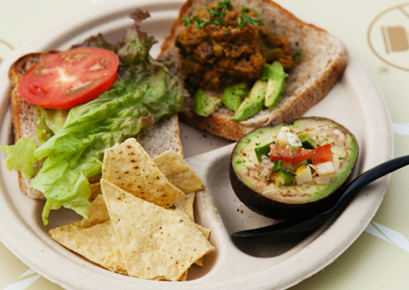 【Pick up】直火でトーストしたパンにアボカドなど少しずついろんな味が楽しめるベジプレートディッシュ。ランチプレートは¥850。