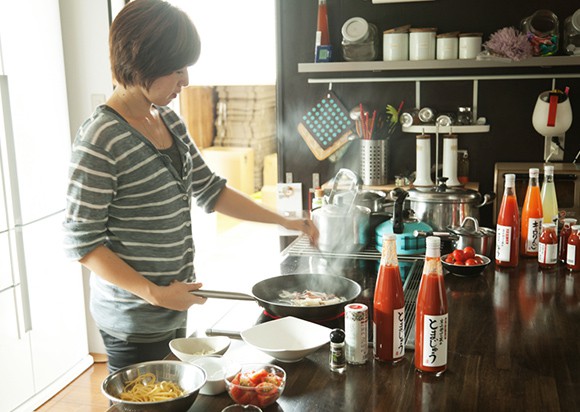 「桃太郎はサッパリとした生食にも適したタイプで、サラダには欠かせない品種。中玉のフルティカは皮が薄く、酸味が少ない分、あとから甘味が広がってくるので、おやつ感覚でパクパク生で食べられます。またミニトマトは酸味と甘味の両方がすごく引き立つタイプ。小さいながらに凝縮された味です」とそれぞれの品種の説明をしてくれたのは、代表の寺田真由美さん。とても美人さんで、パッと輝くような明るい笑顔が印象的です。寺田さんに、どのトマトが好きですか?とうかがったところ「それぞれ好きですが、やっぱり採れたてのトマトに勝るおいしさはないですね」という答えが。