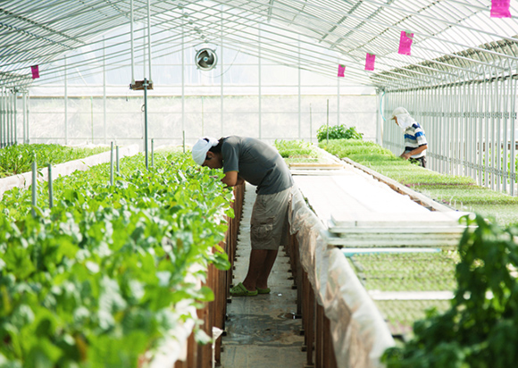 水耕栽培ってご存知ですか?土ではなく、栄養素を含む水で作物を栽培する方法。効率的で、生長が早く、しかもおいしい!と、近ごろ注目を浴びている農法です。しかし比較的歴史が浅いこともあり、研究開発が充分になされていないのも事実。そんな中、水耕栽培の可能性を信じて果敢にチャレンジする喜六。大阪の郊外、豊かな緑に囲まれた山あいに、彼らの農場がありました。